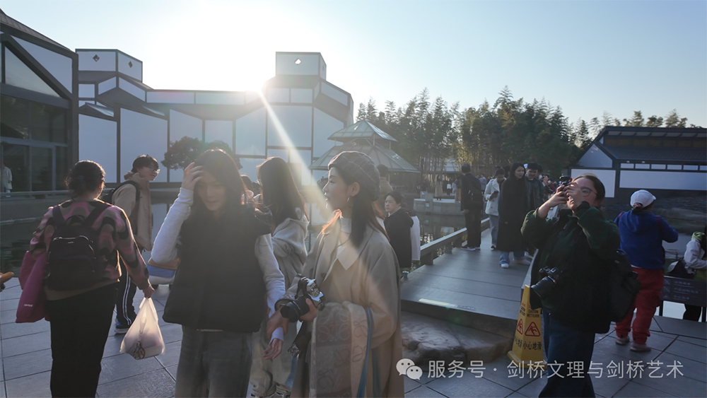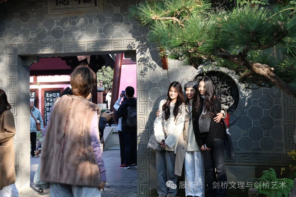 同学们一边游览观赏,一边与老师交流。他们不仅沉浸于江南文化,更在行走中持续创作,积累了丰沛的灵感,完成了一次从观察到表达的艺术实践。