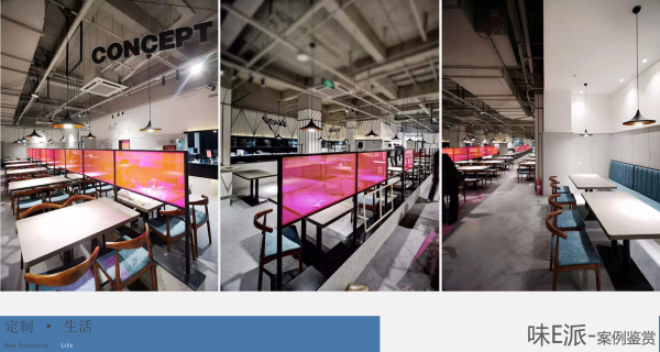 • 味E派概念简餐:开放式厨房+工业风设计,结合智能灯光系统,营造年轻化、高互动的餐饮场景。