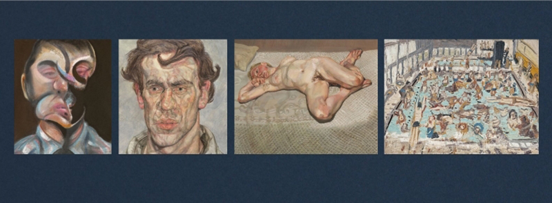 由左至右:弗朗西斯・培根《自画像》1972年作;卢西安・弗洛伊德《年轻的画家》1957–1958年作;卢西安・弗洛伊德