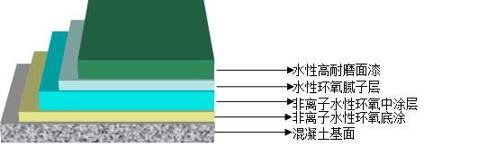 3)环氧腻子及面漆层:采用“百年成诺”牌非离子水性环氧漆加石英粉刮涂腻子层。