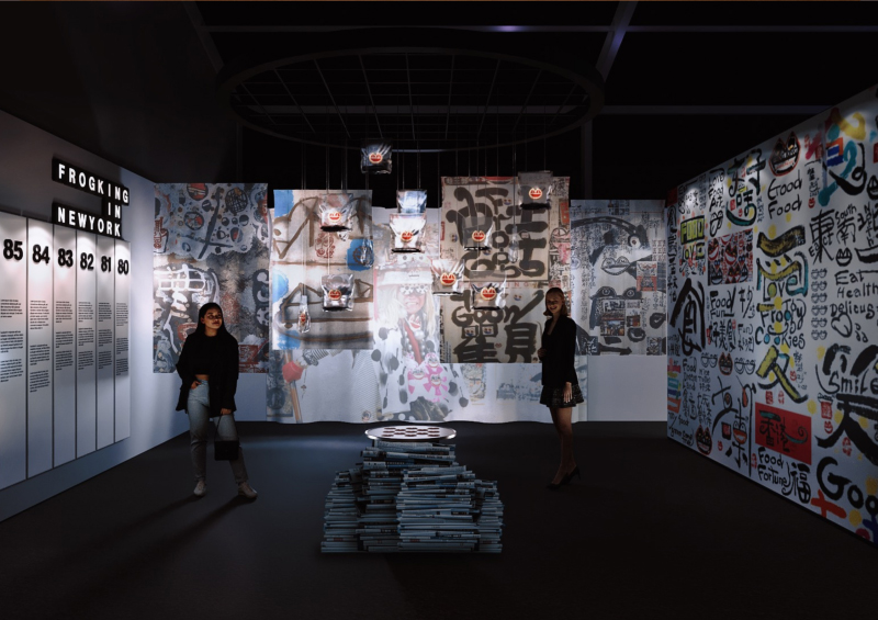 《蛙托邦》展厅呈现新水墨运动概念,而在《蛙趣空间》(Frog Fun Dimension)中,艺术不再是被保存的对象,而是一场正在发生的生活盛事。 展厅化身为游乐场,当下的每一刻都是创作素材,只要全心投入便能参与其中,让每一次的碰撞,都成为一场揉合了混乱、连结与欢乐的独特创意体验。