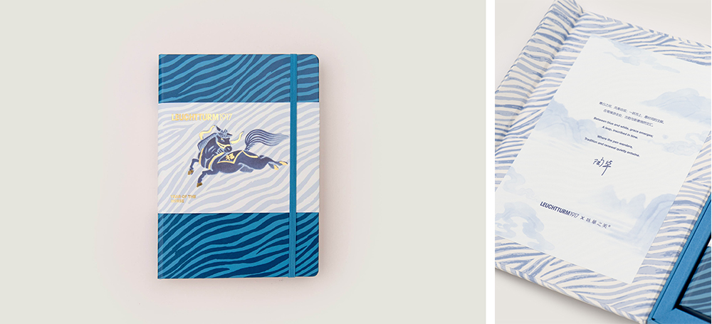2026年LEUCHTTURM1917马年生肖产品的设计灵感源于宋代瓷器骏马图案灵感,金鞍鞯的骏马跃动于青白釉色纸面,既承袭宋瓷质感的雅韵,又以金马意象传递祥瑞。笔尖流转间,将书写升华为承载文化祝福的典藏仪式,简约设计尽显东方美学精髓。