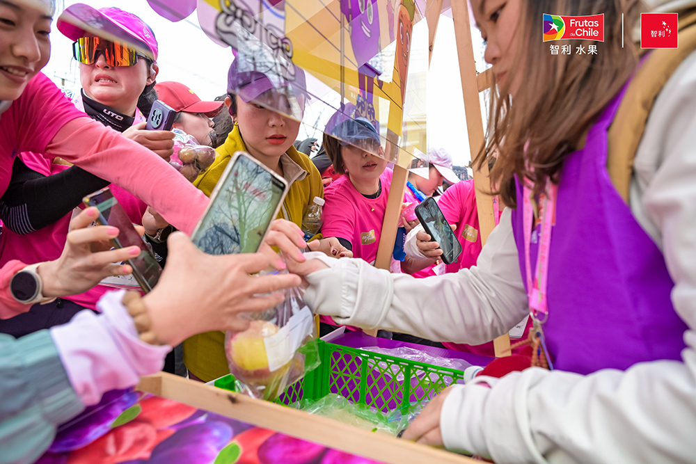 中国上海,2026年3月8日——正值国际妇女节之际,智利水果出口商协会(Frutas de Chile)携手抖音、叮咚买菜等主流电商平台,以及沃尔玛、盒马、百果园、绿叶水果等核心渠道商亮相2026上海樱花节·女子10公里精英赛,开展智利核果推广活动,将智利西梅、桃李的天然健康属性与运动生活方式深度融合,传递“智利西梅桃李,每天一起健康紫”的理念。