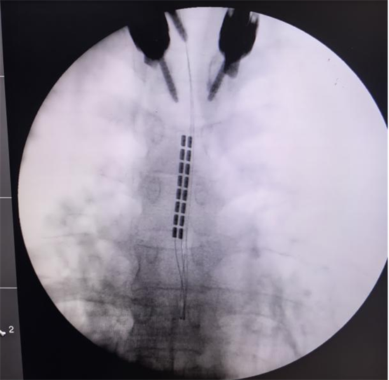 经过严格的术前讨论,团队决定为孙女士施行颈段脊髓电刺激(SCS)植入术。手术由陈菊祥教授主刀,在C臂X光机精准引导下,将刺激电极植入颈髓(C2-C4水平)硬膜外腔的中线位置。