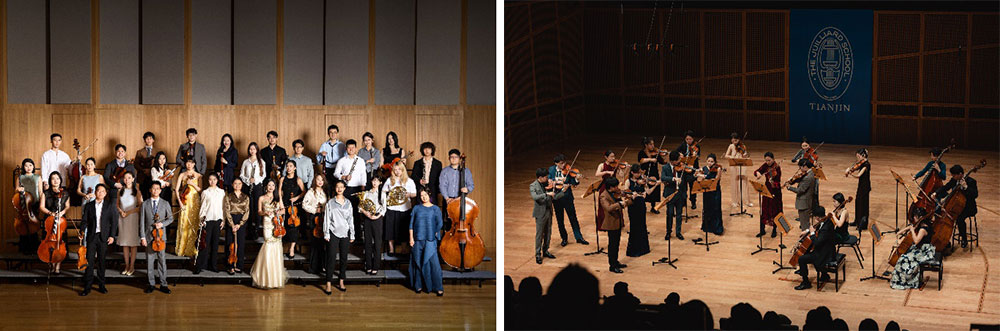 图注:天津茱莉亚学院常驻教师合照(左);天津茱莉亚室内乐团(右)
