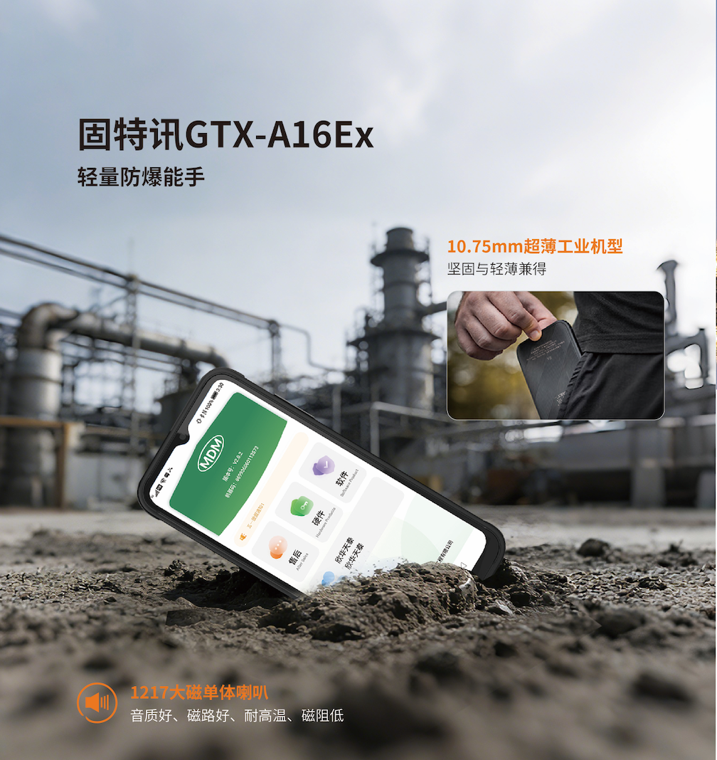 嘈杂环境通讯:GTX-A16Ex搭载大磁单体喇叭,确保在工业噪音背景下指令清晰可闻。90Hz高刷屏使界面滑动顺畅,提升操作体验。对于穿戴重型防护服的作业场景,M7-Ex提供2.4英寸屏幕配合物理按键,支持一键PTT,适合极端环境盲操作,3.5W超级大喇叭可输出109dB音量,确保指令必达。