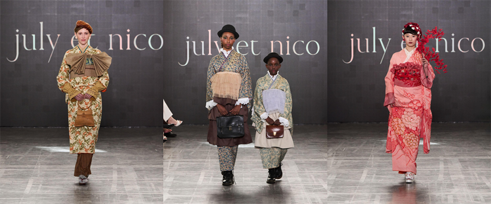 “将和服从衣柜中带回光芒之下”正是 july et nico 本季系列的核心精神。该系列唤醒了那些长期沉睡在衣柜中的和服,重新展现其面料与图案中所蕴含的美感、精湛工艺以及承载的个人记忆。设计在保留每件和服原有结构与精神的同时,以当代视角进行重新诠释,使传统与现代之间形成自然流动的对话。