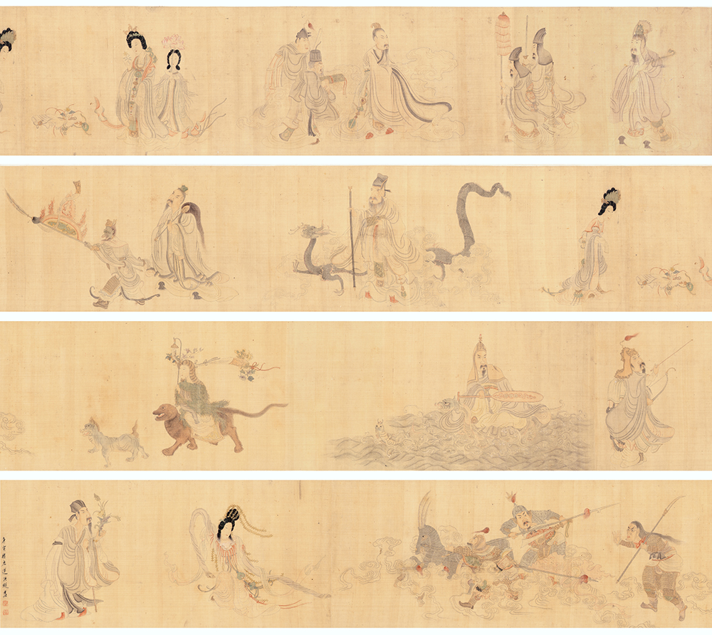 陈洪绶与《九歌》之缘始于十九岁习《楚辞》后感发作《九歌图》,后付木刻,流传甚广。本幅《九歌图卷》为老莲传世唯一再次以《九歌》全本创作,于晚年再造其经典成名题材,尽显《楚辞》之缱绻浪漫,不仅体现陈氏之绘画技艺,更全面展示其精神面貌,可谓晚年人物绘画集大成之作。