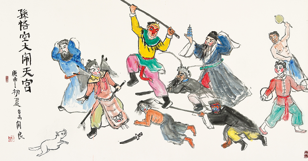 款识:孙悟空大闹天宫。庚申初夏,番禺关良。
