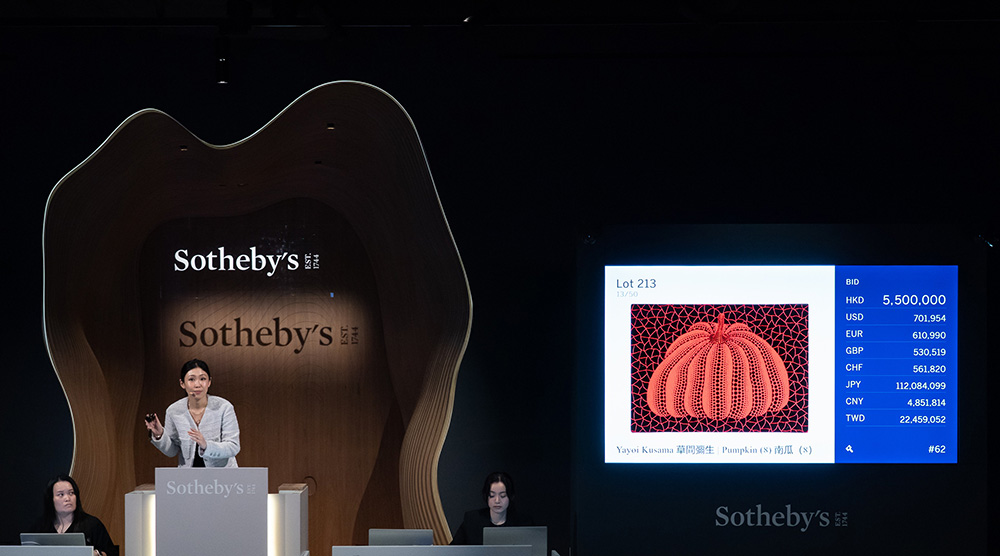 · 当代日间艺术拍卖:草间弥生《南瓜(8)》以7,040,000港元超越高估价成交(估价:5,200,000 - 7,000,000港元)(拍品编号213)