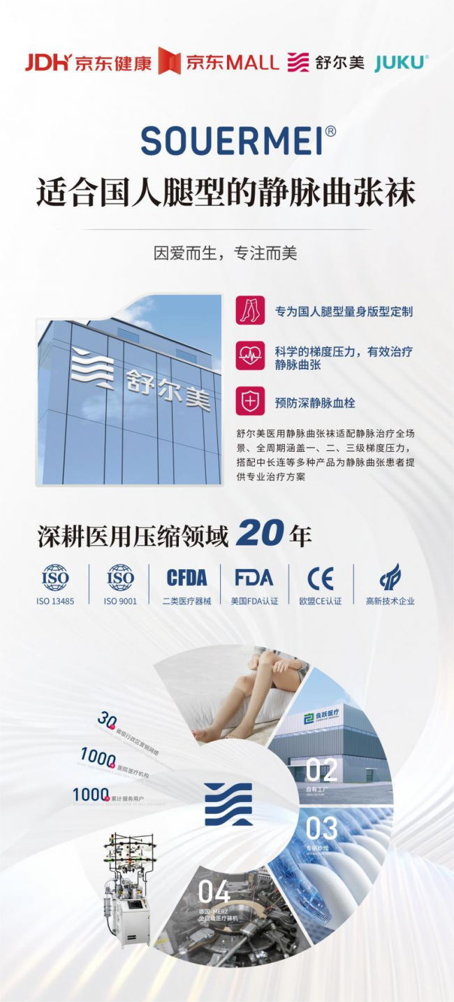 舒尔美深耕医用压缩、静脉护理领域多年,构建了一套成熟的技术研发体系,秉持严格的生产质控标准,并拥有二类医疗器械权威资质,已然成为下肢静脉健康护理领域的专业标杆。多年来,品牌始终聚焦人体下肢循环健康,通过医学级压缩技术帮助静脉功能不全人群改善血液回流、缓解下肢不适。其技术成果不仅广泛应用于临床护理场景,在日常健康防护领域也发挥着重要作用。