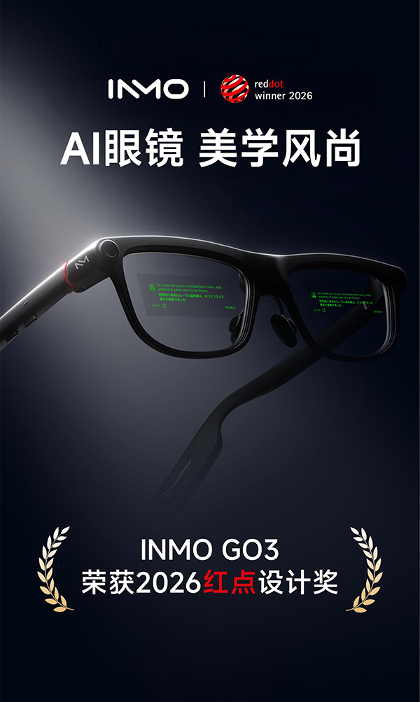 近日,影目科技第三代AI眼镜INMO GO3荣获2026红点设计奖,这一国际权威奖项既是对产品“科技美学”设计理念的肯定,也彰显了INMO GO3在轻量化设计与AI功能融合上的突破性创新。这项设计荣誉,更意味着AI眼镜开始从“科技产品”,进入“日常工具”的关键阶段。
