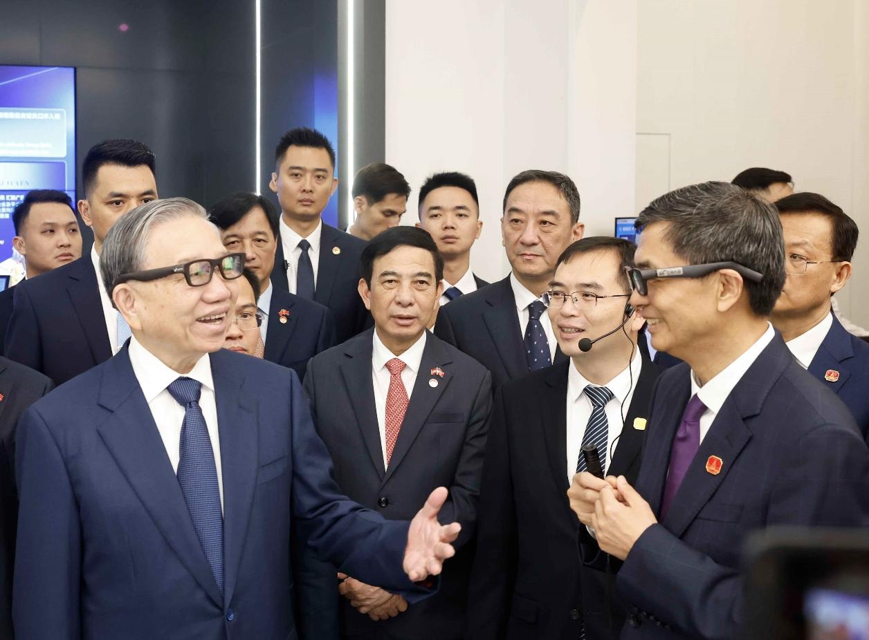 今日早上,正在中国进行国事访问的越共中央总书记、国家主席苏林,在广西壮族自治区党委书记陈刚的陪同下,参观了位于南宁的中国—东盟人工智能应用合作中心。参观期间,苏林重点体验了一款在广西本土智造的AI翻译提词眼镜,对该产品展现出的跨语言沟通能力给予高度关注。
