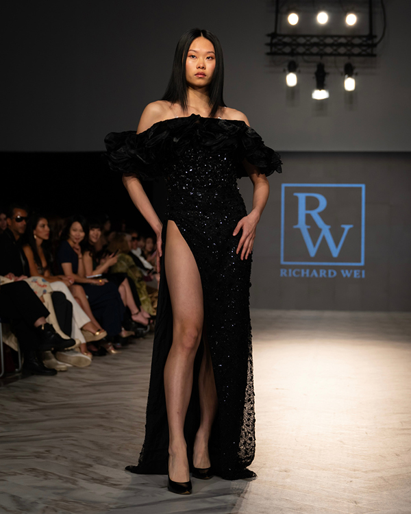 Richard Wei presents a couture interpretation of contemporary evening wear: sculpted silhouettes, meticulous construction, and luminous surfaces that capture and reflect light in motion. Rooted in precision and elevated craftsmanship, the collection articulates a refined vision of modern elegance shaped by the rhythm of the city after dark.