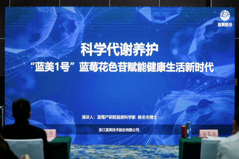 图:陈冬杰博士发表演讲《科学代谢养护:“蓝美1号”蓝莓花色苷赋能健康生活新时代》