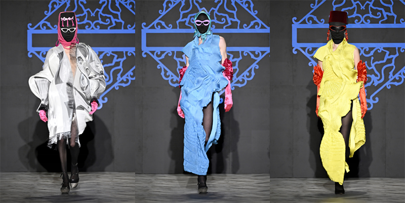 该系列源于一个核心提问:时尚是否能够承载有意义的信息?设计师们以联合国可持续发展目标为灵感——如性别平等与教育议题——并将这些主题转化为极具视觉冲击力的秀场造型。