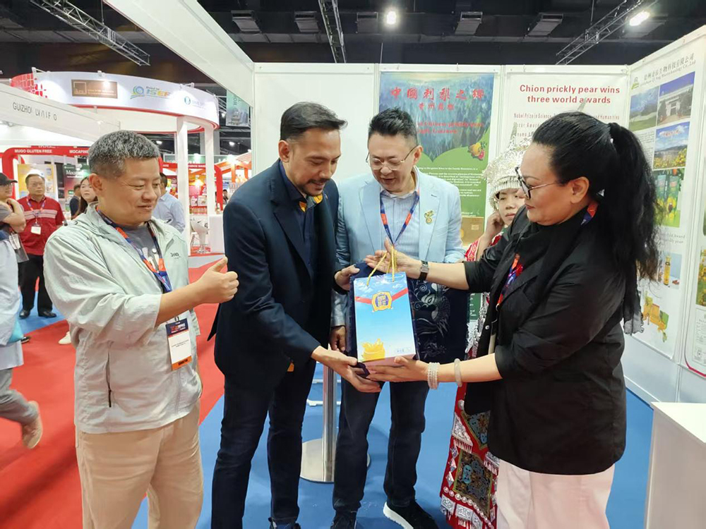 图:马来西亚对贸易发展局(MATRADE)南部总监MOHAMAD HARIS ABDUL LATIFF Director参观中国贵州展区并与企业代表亲切交流