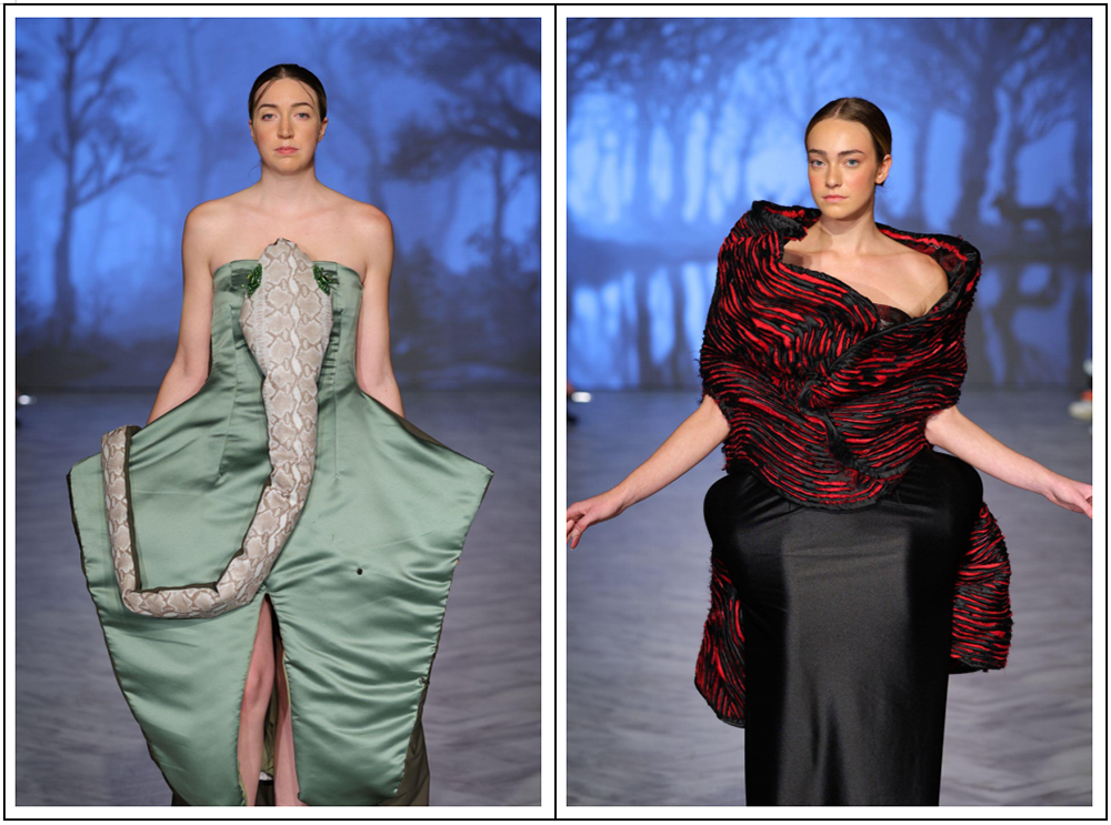 在本季温哥华时装周(Vancouver Fashion Week SS 2026)上,加拿大艺术与设计教育机构 Openstudio Academy of Art and Design 带来了充满哲思与情感张力的全新系列——《Veiled Ephemera: A Journey of Change》(短暂之幕:蜕变之旅)。由两位优秀的学生设计师携手呈现,这场秀不仅展示了新生代创作者的美学实验,更是一次关于“变化”与“重生”的当代寓言。