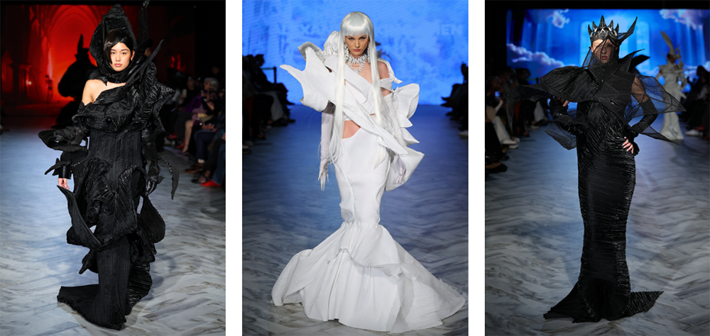 Alexander King Chen以其极具戏剧性的秀场《Good vs Evil(善与恶)》震撼亮相温哥华时装周,将时尚与叙事艺术完美融合。以大胆的高级定制与红毯风格闻名的Chen,在本次系列中深入探讨人性中的双重对立,通过鲜明的廓形与精湛的工艺展现出视觉与情感的张力。