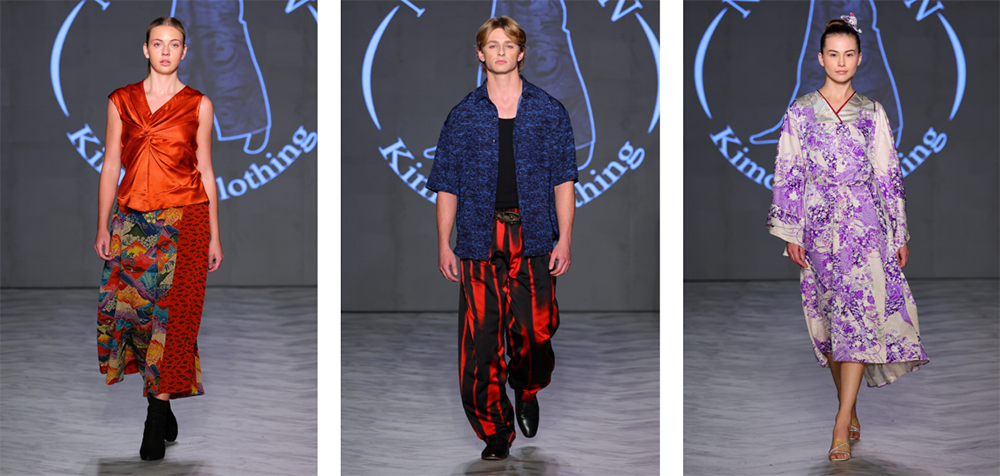 在温哥华时装周上,武田园子(Sonoko Takeda)发布了她的系列作品 “Time and Distance(时间与距离)”。该系列以复古的 14 英寸宽丝绸和服面料为基础,重新演绎传统工艺于当代语境之中。通过精心挑选的色彩与图案,每一件作品都在古老手艺与现代设计之间建立起桥梁。