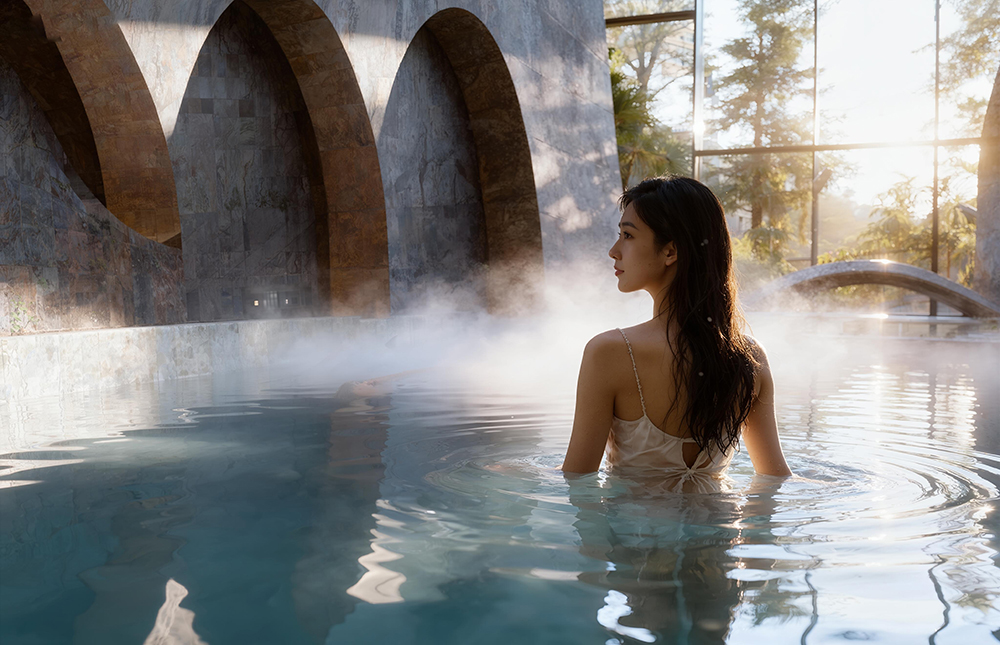 在这里,游乐体验的核心从“设施”转向“场景”。你可以在亿万年形成的天然溶洞里喝咖啡、在富春江畔古渡口打造的酒吧里微醺、也可以沿着百年古道徒步礼佛、在“十七长池”室内汤泉中心泡汤、嬉水。如果你喜欢刺激,酒店周边即可体验山地越野、马术、滑雪等动感项目;如果你想要安静,酒店还可定制非遗手作、颂钵疗愈、瑜伽冥想等深度体验活动。