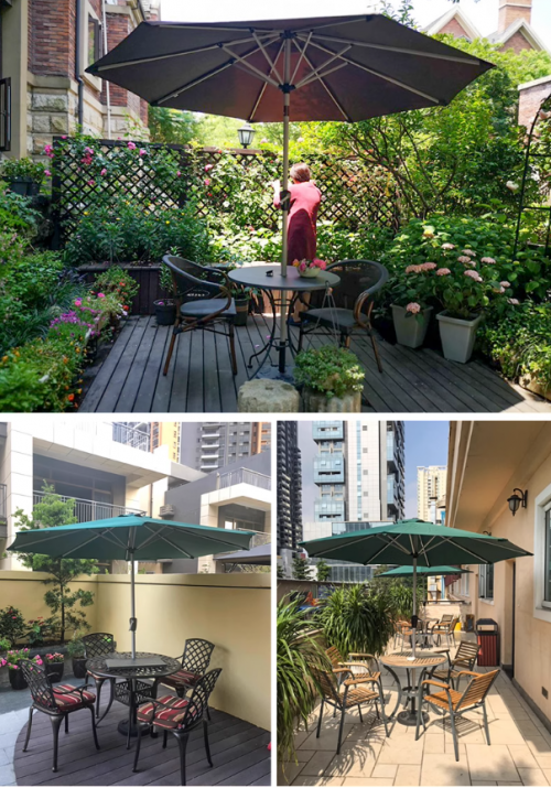 不论搭配圆桌、方桌还是长桌,紫叶伞都能灵活适配,仅需80~130厘米的空间,轻松实现遮阳与美观的平衡。小巧身材却大有作用,无论是庭院休闲、户外咖啡厅,还是泳池边、露营钓鱼,它都能完美融入,为您节省每一寸空间。