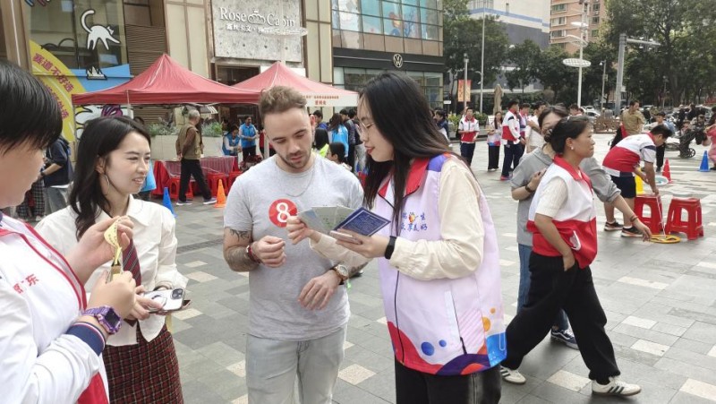 在广州市天河区领展广场,公司设立的金融消保互动摊位吸引了众多外籍人士驻足。工作人员以面对面交流,细致讲解保险常识、理性投资理念及常见金融诈骗防范技巧,并结合趣味问答游戏,在轻松氛围中帮助外籍友人掌握实用金融知识。