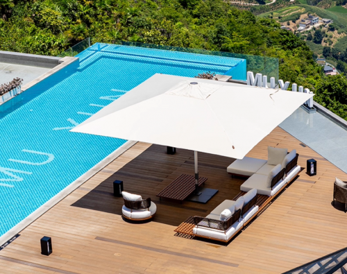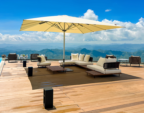 或是在泳池边、咖啡馆露台,它默默撑起一片优雅休闲区。