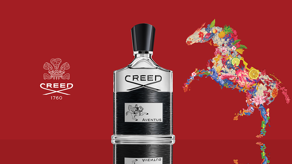 透过“花漾骏马”这一富有诗意的艺术形象,蔡赟骅巧妙地将Creed标志性香氛Aventus拿破仑之水中所蕴含的天然原料,转化为充满生机与动感的视觉符号。佛手柑的清新、菠萝的活力被细腻融入创作,不仅传递出生命的蓬勃朝气与坚韧品格,也诠释了‘力量,果然与无畏’这一核心精神。