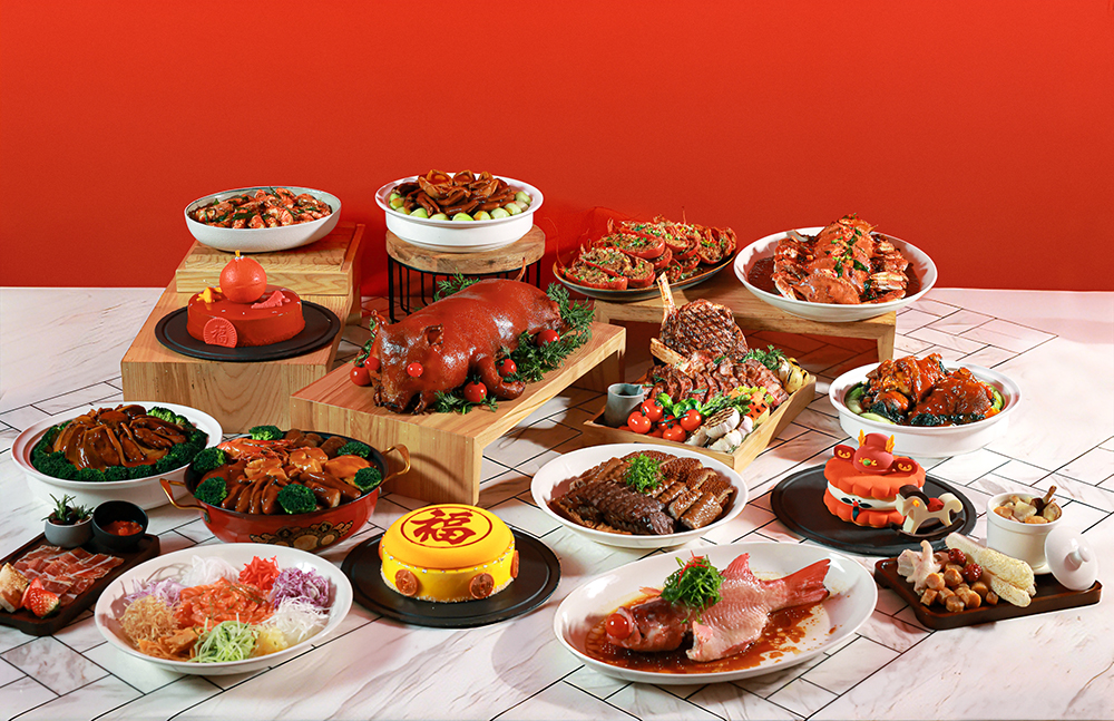 节庆菜单以寓意吉祥的新春捞起三文鱼为亮点,融合三文鱼、金黄薄脆和蔬菜丝,宾客可亲手“捞起”为新年掀起好运。此外,菜单还汇集多款经典贺年菜式,包括新加坡黑胡椒蟹、发财蚝豉大利及新春鸿运当头烤乳猪。为增添欧陆节庆风情,餐厅特别设有厨师现场切配的伊比利亚5J火腿,让宾客品味咸香臻味。最后,宾客可前往甜点专区尽情品尝一系列主题甜点,为这顿丰盛团圆聚餐画上完满句点。