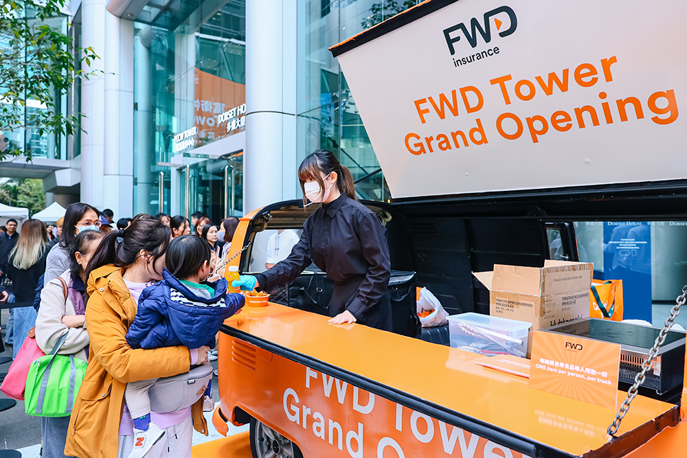 图片说明:FWD美食车连续三日提供免费小食及饮品,与太古坊租户及附近小区居民共享喜悦