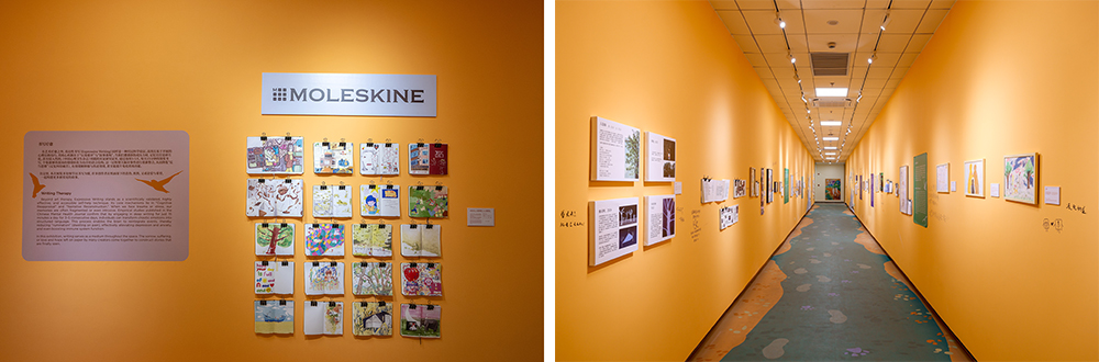 本次展览呈现40余位创作者的作品,展出作品来自策展团队陪伴住院患者的创作、MOLESKINE长期用户投稿等多方作品。展览聚焦“照护者”这一长期被忽视的群体,包括两支队伍:一支是“穿白大褂”的正式照护者(医护、社工等),另一支是“穿便衣”的非正式照护者(家人、朋友等)。通过来自不同身份创作者的作品,展览呈现照护关系中真实而复杂的情绪。展览中,MOLESKINE 的笔记本汇聚种种表达,使情绪得以被承载、被记录、被回看。
