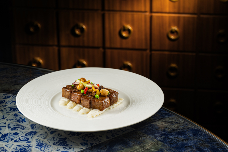 这道高雅精致的佳肴讲究口感、平衡与精湛刀工,以粤式焗法处理日本和牛,正是郑师傅对文化交融的大胆诠释。